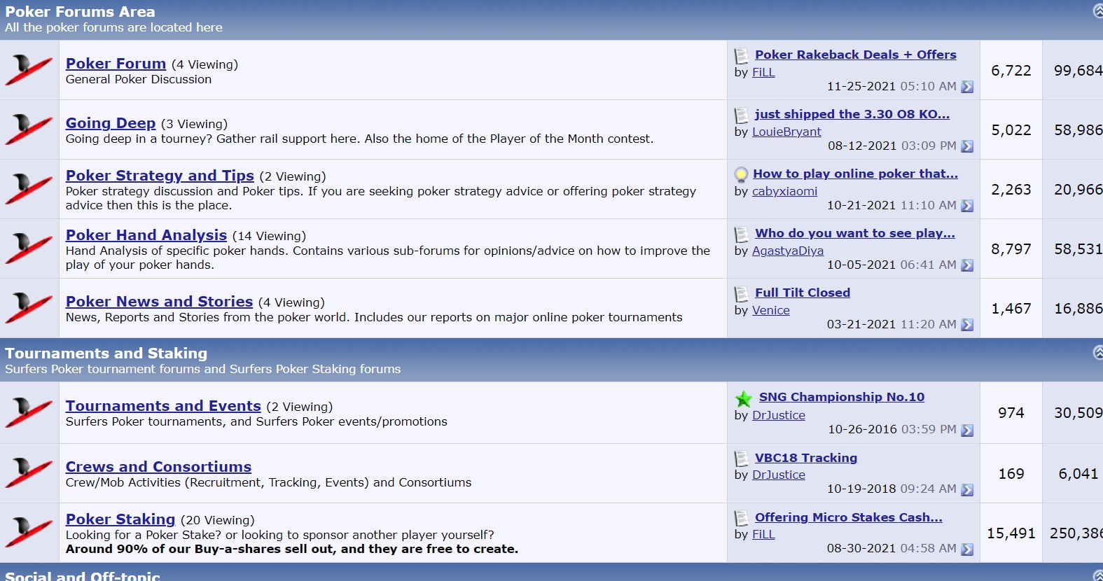 2) The Poker forums and the staking & tournament forums